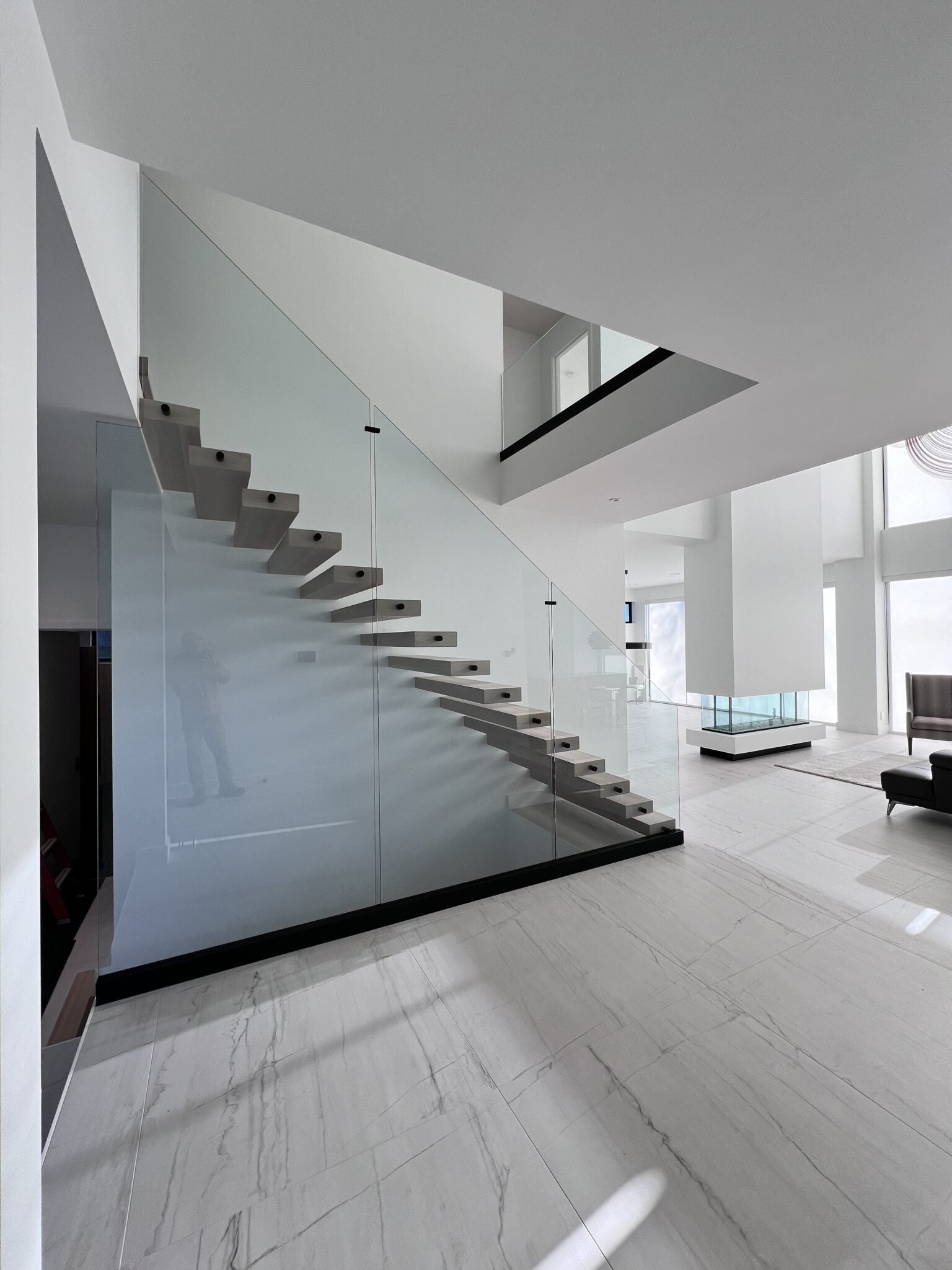 Installation de rampe intérieure en verre trempé