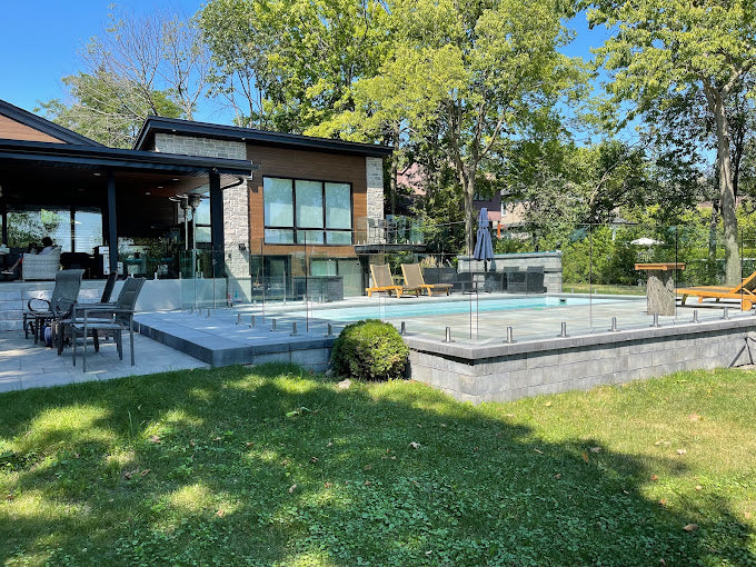 Spécialistes en rampes de verre, intérieures et extérieures, vous pouvez aussi compter sur notre expertise pour la réalisation de projets sur mesure tels que la fabrication de murs de douche en verre esthétiques et hautement résistants, ou encore, par exemple, pour l’installation d’une clôture pour piscine en verre réglementaire apportant une touche d’exception à votre cour extérieure !