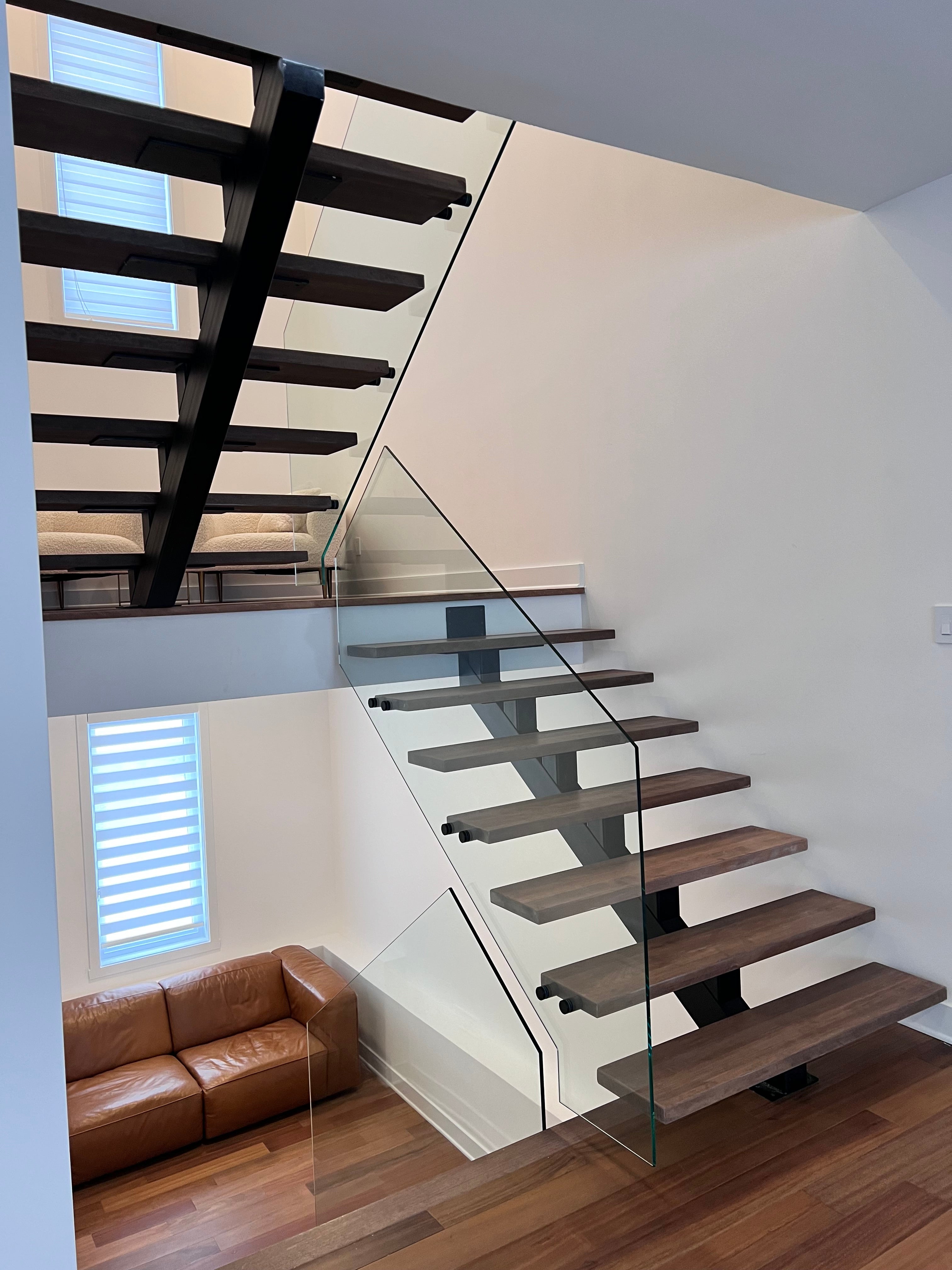 Parcourez notre galerie de photos pour voir de près la qualité de nos finitions, et voyez comment nos limons en verre sont conçus pour s’harmoniser à votre espace!