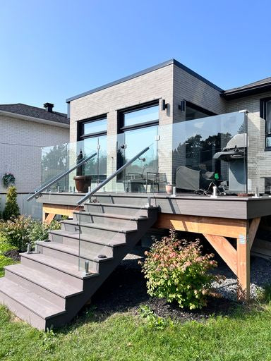 Ajoutez du prestige à votre demeure en optant pour la pose d’une rampe d'escalier extérieur en verre trempé. À Montréal, sur la Rive-Sud et sur la Rive-Nord, nous sommes votre référence en fabrication et en installation de rampes en verre résistantes pour vos escaliers extérieurs. Profitez d’un fini à votre goût, tout en assurant la sécurité de vos installations !