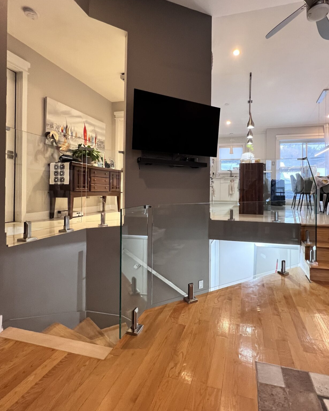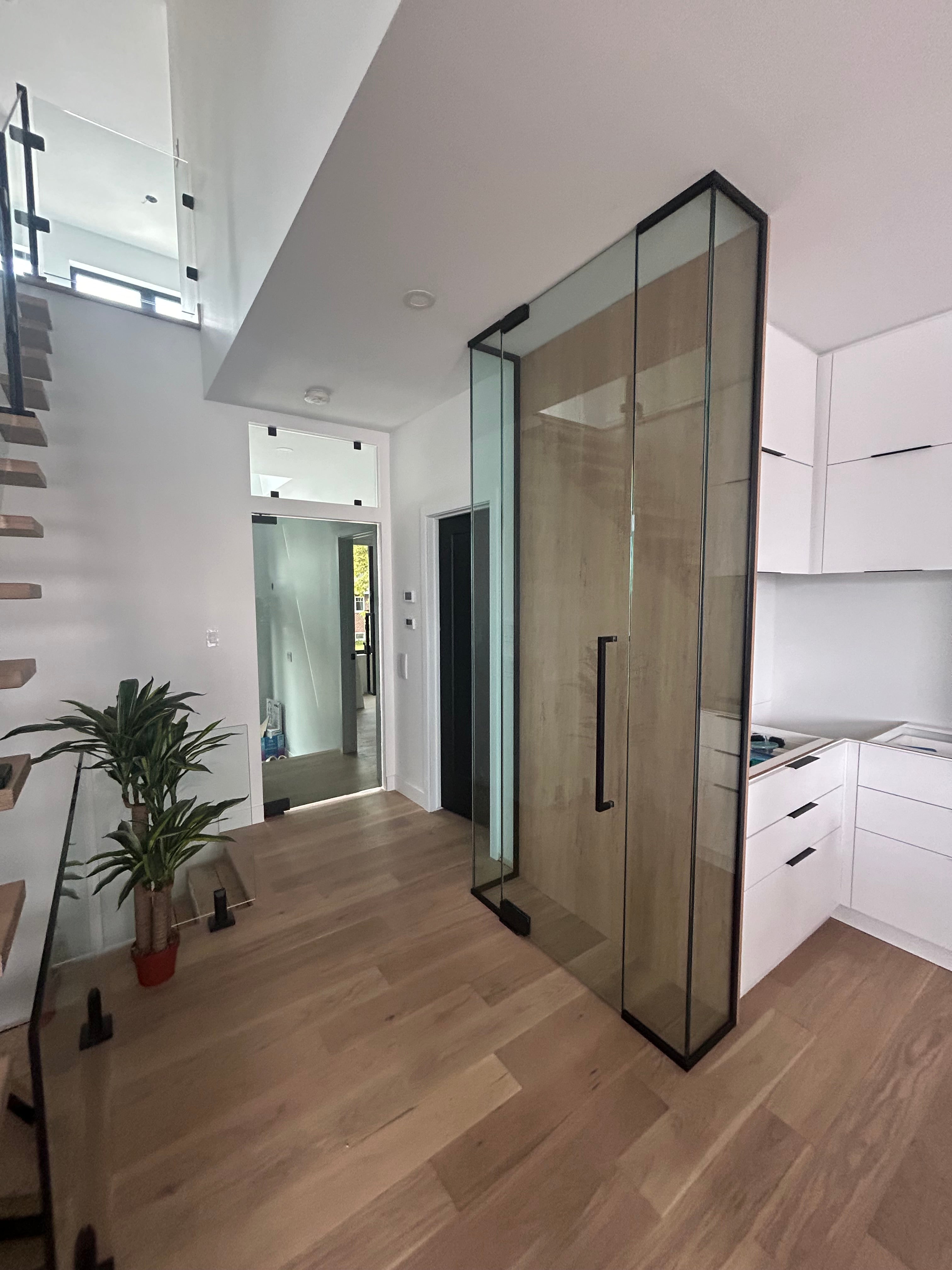 Chaque rampe est fabriquée sur mesure pour s'harmoniser parfaitement à votre architecture intérieure. Qu'il s'agisse d'un verre autoportant ou d'un système avec quincaillerie minimaliste, nous vous garantissons un produit de qualité supérieure et une installation irréprochable, répondant rigoureusement aux réglementations québécoises en vigueur.